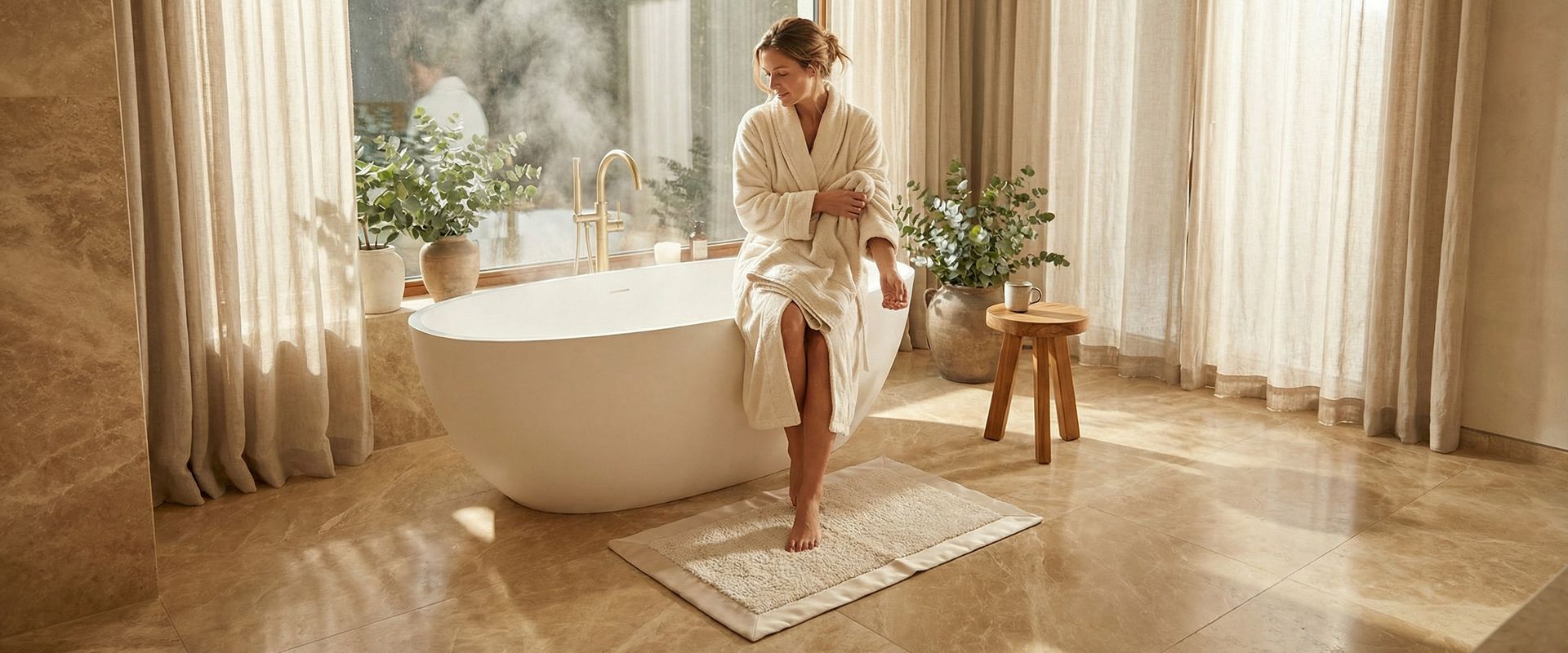 Die Sicherheit im Bad beginnt am Boden. Unser schwerer Baumwoll-Badteppich liegt aufgrund seines Eigengewichts deutlich stabiler als leichte Kunstfaser-Matten. Das dichte Frottiergewebe schafft eine rutschhemmende Oberfläche. Es saugt sich auf Fliesen fest, sobald Feuchtigkeit im Spiel ist. Im Gegensatz zu dünnen Mikrofaser-Matten bietet schwere Baumwoll-Qualität von Natur aus besseren Halt. Dünne Matten rutschen auf nassem Untergrund leicht weg. Für zusätzliche Sicherheit auf sehr glatten Fliesen können Sie waschbare Antirutsch-Unterlagen verwenden. Diese sollten atmungsaktiv sein, damit sich keine Feuchtigkeit unter der Vorlage staut. Wichtig: Hängen Sie den Badteppich nach Gebrauch zum Trocknen auf. Eine durchnässte Matte rutscht leichter als eine trockene. Regelmäßiges Waschen entfernt zudem Rückstände von Pflegeprodukten. Duschgel und Bodylotion können die Unterseite rutschig machen. In Hotels wird genau deshalb auf schwere Frottier-Qualität gesetzt. Sie vereint Komfort und Sicherheit ohne Kompromisse.